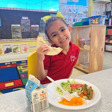 Every day, our in-house cook prepares balanced, kid-friendly meals—including breakfast, lunch, and snacks. Menus often reflect classroom themes, turning mealtimes into fun and tasty learning moments.